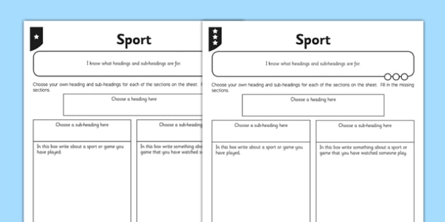 Headings And Sub Headings Sport Worksheet Worksheet Pack